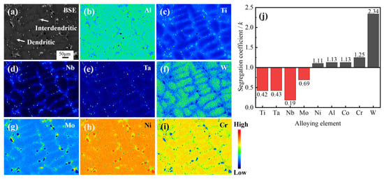 Dendritic structure by EPMA (a–i) and equilibrium partition coefficient k (j) of as-cast Ta-GH4151 alloy.