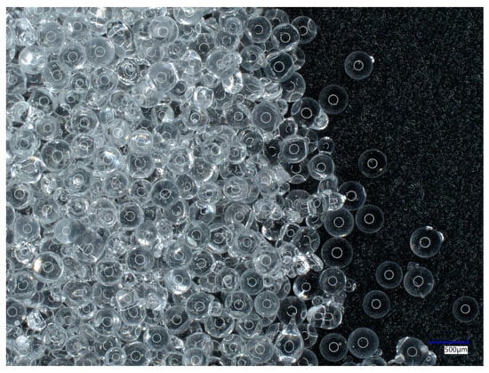 This material allows for the very thorough cleaning of metal surfaces and makes them smooth and satin. This agent is suitable to process thin and brittle materials susceptible to surface damage. The glass beads do not cause aggressive surface abrasion of the workpiece, and as in the case of the copper slag, they can be used multiple times. The hardness of glass beads is 6 on the Mohs scale. The chemical composition of the glass beads used in the study was as follows: SiO