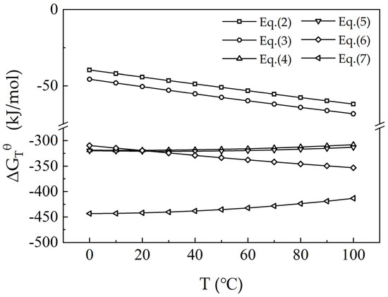 The standard Gibbs free energy changes (ΔGθ) for the reactions were calculated in Figure 3. The results indicate that the ΔGθ values for these reactions are negative at temperatures below 100 °C, indicating that these reactions are thermodynamically favorable. This suggests that hydrochloric acid (HCl) can effectively leach lithium-containing components, resulting in Li primarily existing in the leachate as chloride salt.