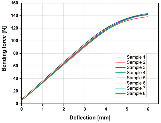 In addition to the tensile and surface analyses, three-point bending tests were conducted to further assess the mechanical properties of the materials. The results of these tests are illustrated in Figure 11.