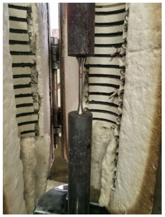 The tensile testing procedure at elevated temperatures was as follows: (1) The test specimen was installed with only the top clamp connected to the test machine to prevent compressive loads due to thermal expansion during heating; (2) the furnace was closed and the test specimen heated to the pre-selected temperature, which was maintained for 10 min (the heating rate is 10 °C/min); (3) the bottom clamp was secured to the test machine and the tensile load applied at a displacement rate of 2 mm/minute until specimen failure [56].