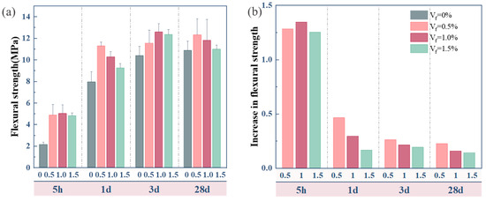 Flexural strength of composites: (a) flexural strength; (b) increase rate of flexural strength.