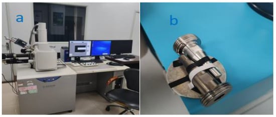 Detection of the nozzle (a) Hitachi S-3400N electron microscopy, (b) experimental sample of nozzles.