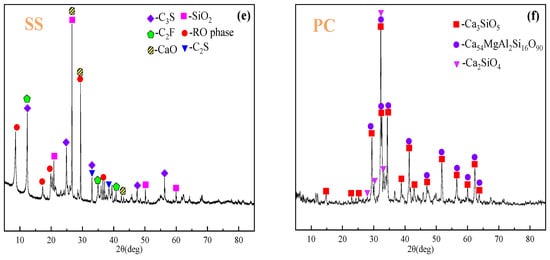 XRD patterns of RM (a), FA (b), DG (c), CS (d), SS (e), and PC (f).