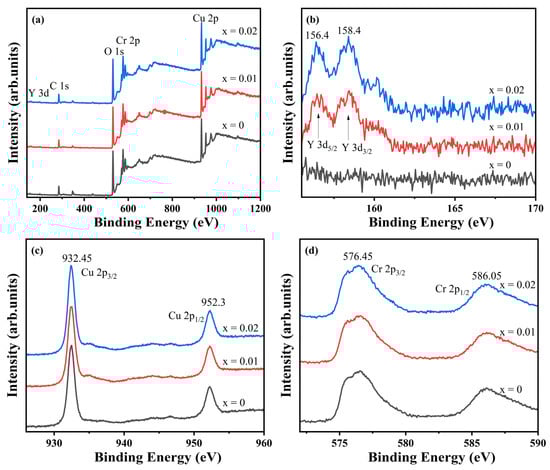 35]. These findings collectively demonstrate preserved +3 oxidation states for Y and Cr alongside +1 valence for Cu. Combined with prior structural analyses, this confirms single-phase CuCrO