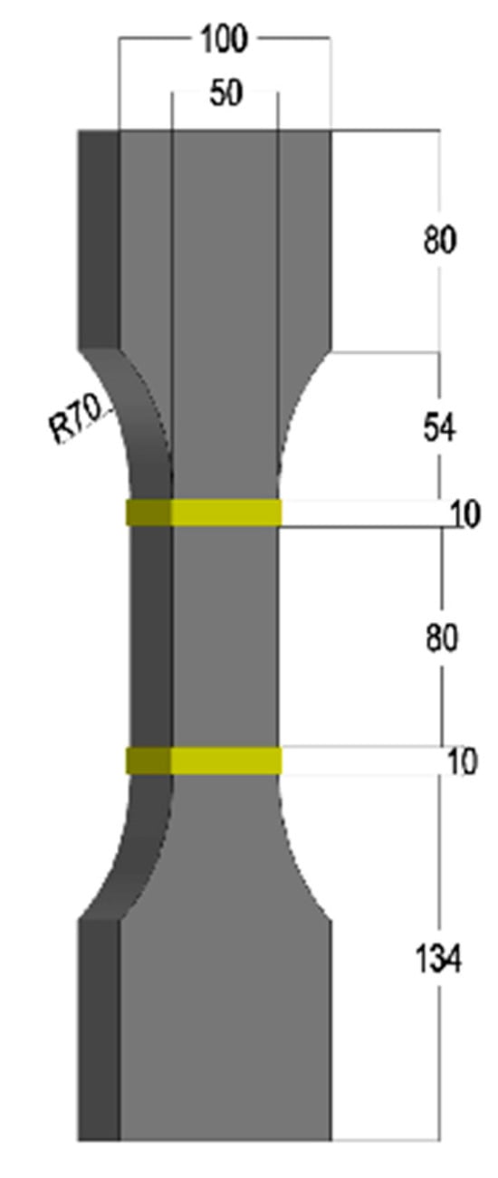 In this study, the uniaxial tensile test was carried out using a “dog bone” shaped specimen with a thickness of 15 mm, and the dimensions of the specimen are shown in Figure 2. To ensure the uniform distribution of nanofillers and fiber fillers, different fabricating methods were used for the CRCC specimens with nano-scale fibrous materials and CRCC specimens with CFs.