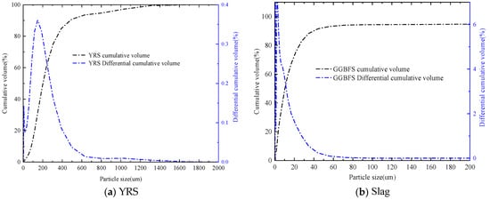 Particle size distribution curves of YRS and slag.