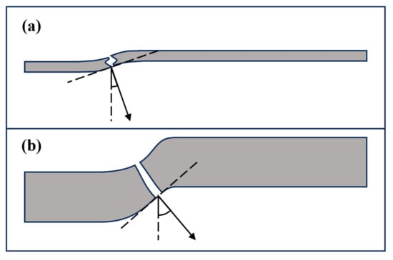 From the performance of the target, compared with the single-layer Al3Ti target, the crack propagation modes of the MIL composite target during the penetration process are failure along the thickness direction and transverse delamination, respectively. Additionally, with the increase in the Ti layer, the transverse delamination is significantly enlarged, and the longitudinal crack deflection to the transverse direction is accelerated. This phenomenon is caused by the following reasons: 1. The thickening of the Ti layer causes the transverse stress propagation in the layer to be farther and the heterogeneous structure failure to be more severe. 2. The tension and shear generated by the warping of the Ti layer aggravate the interlayer crack propagation of the target. 3. The Ti layer changes the stress transfer direction through different bending angles, as shown in Figure 21. In general, the difference in crack propagation modes has a very important influence on the anti-penetration performance of the target, especially in the initial stage of penetration. The increase in the thickness of the Ti layer can make more heterogeneous structures in the target hinder the penetration of the projectile by changing the crack propagation direction.