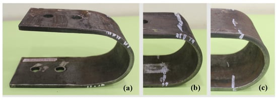 In this notation, AXXX represents the type of steel. The letters t, B, and H are used to indicate the thickness, width, and height of the specimen, respectively. Additionally, the designations “0G” and “90G” are used to specify the loading direction of the tests (see Figure 1). The test specimens were produced in a professional steel fabrication shop and manufactured using a cold forming process, in which steel sheets were bent at ambient temperature to achieve the desired curvature. The steel grades used in this study were ASTM A36 [31] and ASTM A572 Grade 50 [32].