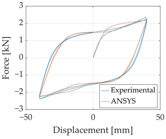 - FEMs developed in ANSYS were validated against experimental results, confirming their accuracy in simulating UFP hysteresis behavior. When properly calibrated with kinematic and isotropic hardening models, the numerical approach successfully reproduced the stiffness, strength, and cyclic energy dissipation characteristics observed in the laboratory. This validation supports the use of FEMs for performance prediction and design optimization of UFP-based systems.