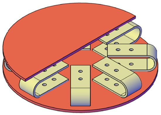 This section presents a multidirectional energy dissipation system based on UFPs, evaluating the influence of various parameters on the mechanical properties of the system. The system consists of two connection plates (upper and lower) and a defined number of UFP elements arranged in either a radial or axially symmetric configuration, as illustrated in Figure 29. This system was originally intended for bridge applications [6], specifically at the interface between the superstructure and substructure to limit excessive displacements. This system also demonstrates potential for broader seismic-resistant applications, including base-isolated buildings and other structures requiring enhanced energy dissipation.