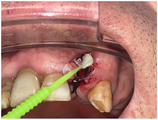 - Elkady, O.; Sweedan, O.; Amer, T. Effect of Intra-Socket Application of Hyaluronic Acid Gel on Soft and Hard Tissue Healing Following Impacted Mandibular Third Molars Extraction (a Randomized Controlled Clinical Trial). BMC Oral Health 2025, 25, 214. [Google Scholar] [CrossRef] [PubMed]
