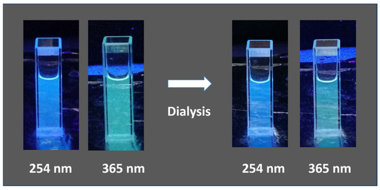 To discharge the possibility that the positive luminescence response was due to the presence of molecular species, a process of purification was performed. An aliquot of the T6 sample was subjected to dialysis against distilled water using a membrane with MWCO 3.5 KDa for 3 h.