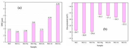 3.3. Effects of Different Metal Cations Regulation on the Physical and Chemical Properties of Montmorillonite and Its Gel Properties