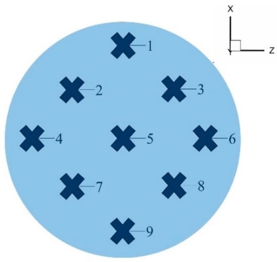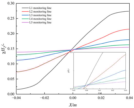 To comprehensively investigate the hydrogen distribution, nine monitoring curves were established along the pipeline, extending from the hydrogen mixing point to the pipeline outlet section. Each cross-section of the pipeline was equipped with nine monitoring points, as illustrated in