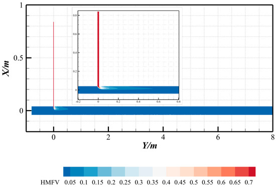 39], we carefully balanced numerical stability and computational efficiency in this work. To ensure robustness while maintaining reasonable simulation times, a conservative CFL value of 0.8 was adopted. To balance numerical accuracy and computational efficiency, the time step in this study was dynamically determined through rigorous implementation of the CFL condition with a safety factor of 0.8.