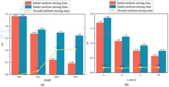 (2) The results demonstrate that increasing hydrogen injection volume from 10% to 25% significantly reduces the uniform mixing length from 100.000 D to 20.875 D. This parametric study reveals that the HMR serves as the predominant control parameter governing mixing efficiency. Concurrently, increasing methane flow rate from 4 m/s to 10 m/s reduces uniform mixing length from 90.875 D to 71.500 D. Compared with the amount of HMR, the influence of the flow velocity on the mixing distance is weak, but it is easy to operate.