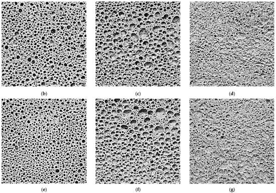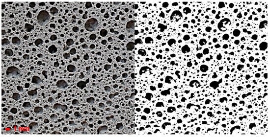 Figure 2 shows the cross-sectional images of the samples and their binarized images. All samples went through the binarization process to measure the average pore diameter. The pore diameters were measured for three cross-sections in one sample to obtain the average diameter value.