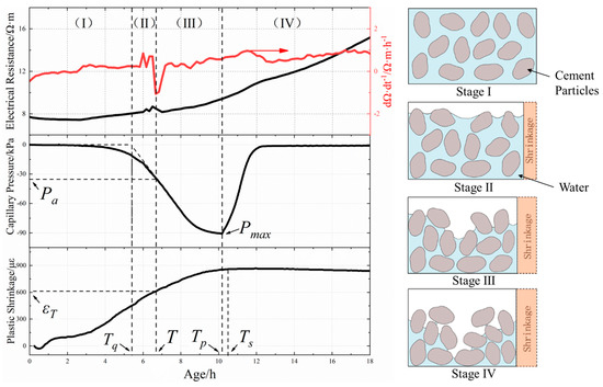 3.2. Early Age of Capillary Pressure, Resistivity, and Plastic Shrinkage of Concrete
