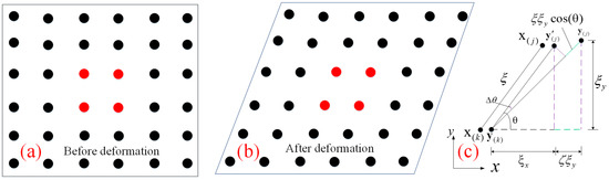 The engineering shear strain of classical continuum mechanics in two-dimensional pure shear objects is not zero, , and the positive strain , as in Figure 5. So under pure shear condition, the expansion term of the object is zero, but the strain energy density term has value, .