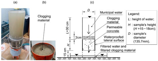 - Cai, J.; Chen, J.; Shi, J.; Tian, Q.; Xu, G.; Du, Y. A novel approach to evaluate the clogging resistance of pervious concrete. Case Stud. Constr. Mater. 2022, 16, e00864. [Google Scholar] [CrossRef]