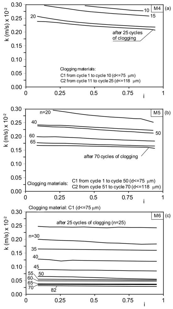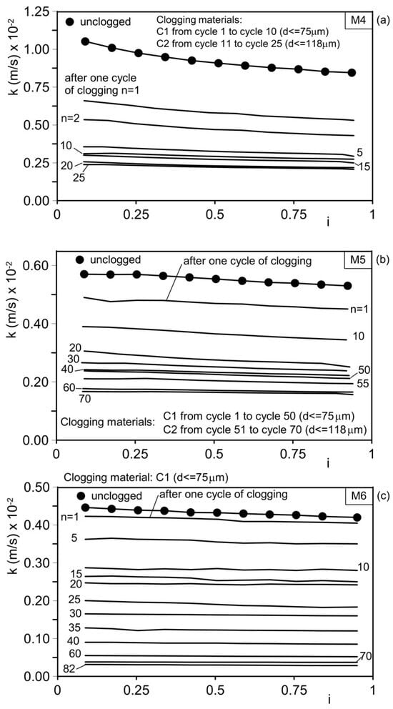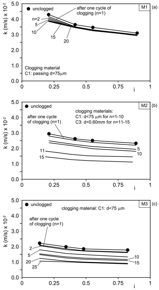 - Residual hydraulic conductivity decreases due to physical clogging. The reduction in permeability increases as the number of clogging cycles rises, and for a very high number of cycles, it can decrease to as low as 10% of its initial (unclogged) value. However, this residual permeability remains sufficient for draining fine cohesionless base soils.