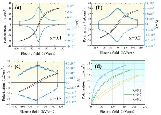 (a–c) Bipolar P-E and I-E loops and (d) the unipolar P-E loops of (1-x)PBSC–xNN ceramics.