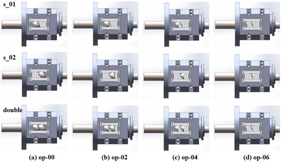 Different component configurations in the experiment: (a) op-00, (b) op-02, (c) op-04, (d) op-06.
