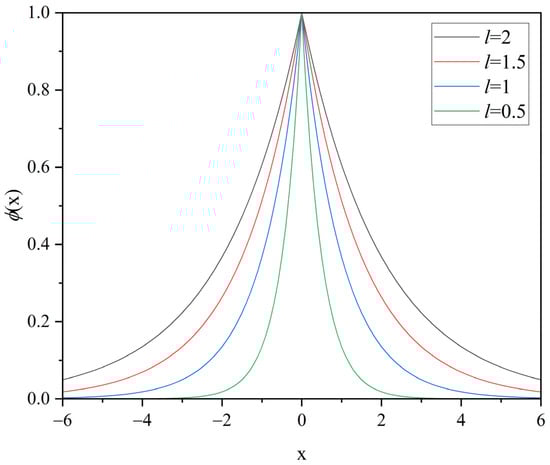 where l is the length scale parameter that describes the hypothetical diffuse crack width, named phase-field characteristic width. The exponential function happens to satisfy the equation conditions, as shown in Figure 1.