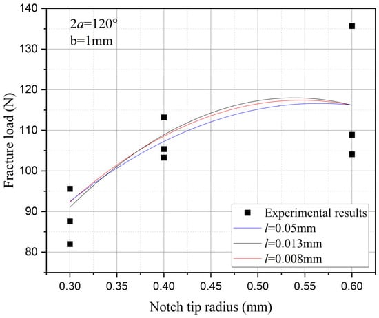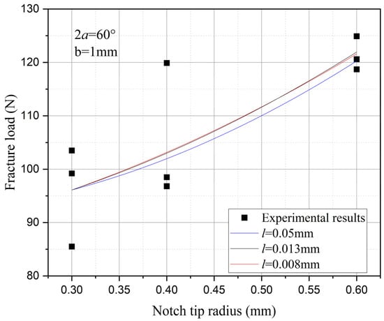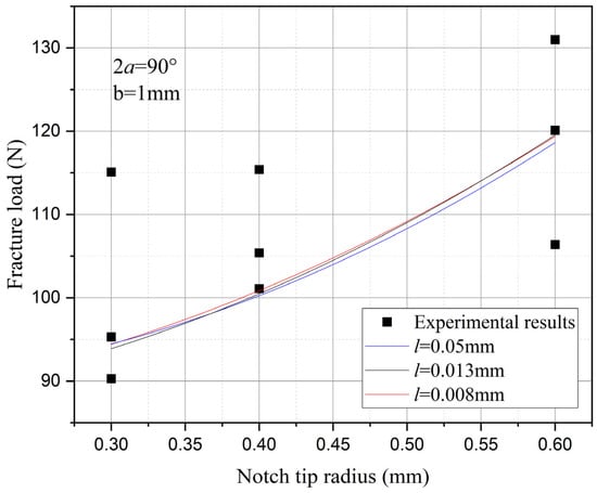 The influence of the notch tip radius on the fracture strength with the opening angle (2α = 60°) and fixed depth.