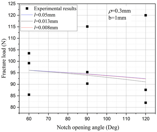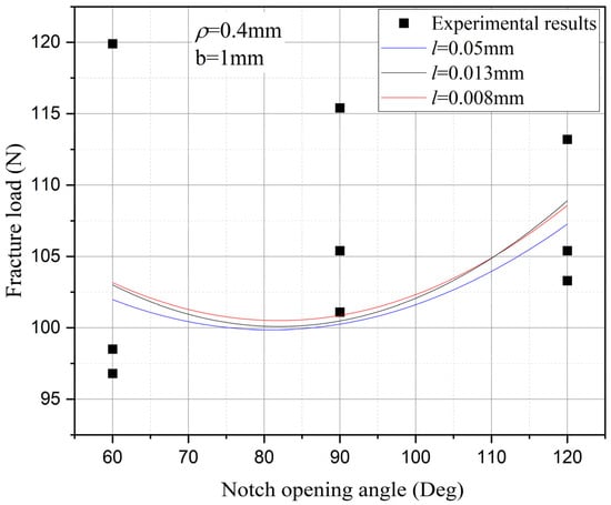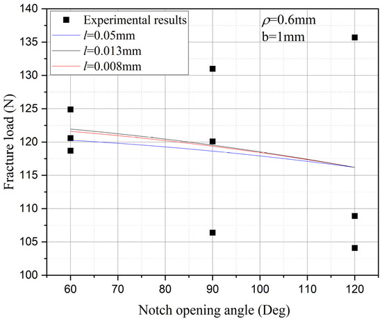 The influence of the notch opening angle on the fracture strength with the notch tip radius (ρ = 0.4 mm) and fixed depth.