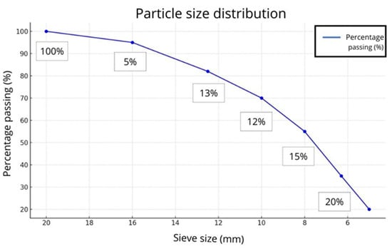 For the preparation of the alkali activation solution, the calcined OSBA was also crushed to produce fine particles, improving its solubility in sodium silicate and distilled water. Then, the OSBA was combined with sodium silicate and distilled water according to the previously reported Na2SiO3/OSBA ratios. The slag was also kiln dried to avoid any accumulation of moisture and sieved and sorted into different particle sizes: (i) 22.4 to 20 mm, (ii) 20 to 16 mm, (iii) 16 to 10 mm, (iv) 10 to 8 mm, and 8 to 5 mm.