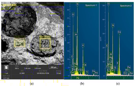 Finally, the SGS composition includes several oxides, including SiO2 (22.54 wt.%), Al2O3 (10.81 wt.%), CaO (27.13 wt.%), and Fe2O3 (23.71 wt.%).