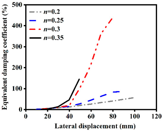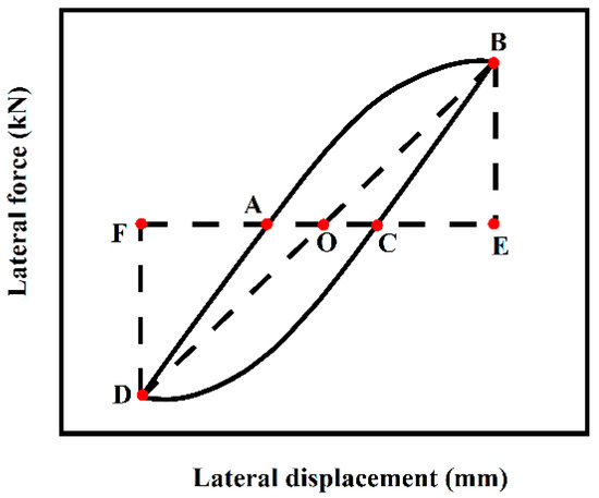 In this paper, the equivalent viscous damping coefficient is used to reflect the energy dissipation capacity of structural members [21]. Its expression is shown below, and the specific area is calculated in Figure 15.