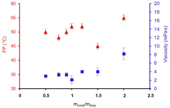 | Formulation | mcond/minsu | Viscosity (mPa·s) | FP (±1 °C) |