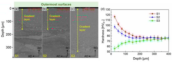 - Oh, J.; Park, H.D.; Gwak, M.; Lee, J.; Son, S.; Amanov, A.; Kim, H.; Seol, J.; Sunh, H.; Kim, J. Mechanical property enhancement in gradient structured aluminum alloy by ultrasonic nanocrystalline surface modification. Mater. Sci. Eng. A 2021, 812, 141101. [Google Scholar] [CrossRef]