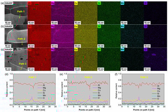 - Liao, Z.; Zhang, L.; Hou, X.; Huang, X. Grain boundary segregation of solutes and associated plastic deformation mechanisms in nanocrystalline Al–Cu and Al–Mg alloys: A molecular dynamics study. J. Mater. Res. Technol. 2025, 35, 25–36. [Google Scholar] [CrossRef]