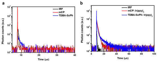 - Lee, J.; Jeong, C.; Batagoda, T.; Coburn, C.; Thompson, M.E.; Forrest, S.R. Hot excited state management for long-lived blue phosphorescent organic light-emitting diodes. Nat. Commun. 2017, 8, 15566. [Google Scholar] [CrossRef]
