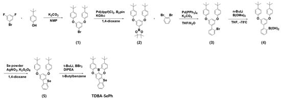 2.1.6. Synthesis of 3,6-di-tert-butyl-9,16-dioxa-15-selena-4b-boraindeno[2,1-a]naphtho[3,2,1-de]anthracene (TDBA-SePh)