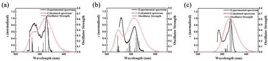 Theoretical UV–vis absorption spectra investigated employing the TD-DFT/B3LYP/6-31 g(d) method for (a) TCZT, (b) TIDT, and (c) TDBCZT in contrast to the experimental UV–Vis absorption spectra of TCZT, TIDT, and TDBCZT in toluene.