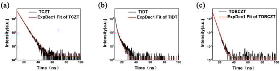 Lifetime decay curve of (a) TCZT, (b) TIDT, and (c) TDBCZT.