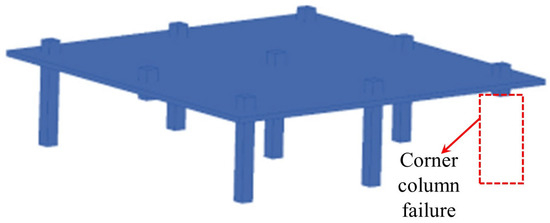 - Bu, J.; Hu, Q.G.; Zhang, F.Z.; Su, Z.B. Analysis and Research on The Progressive Performance Collapse of Plate Structure Based on the Failure of Side Column and Corner Column. In Proceedings of the 28th National Structural Engineering Academic Conference, Nanchang, China, 19–20 October 2019; Volume III, pp. 10–16. (In Chinese). [Google Scholar]