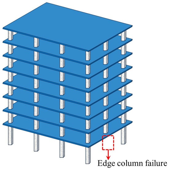Progressive collapse-resistant design requires a comprehensive understanding of the characteristics of accidental actions to implement targeted mitigation strategies. However, empirical evidence shows the impracticality of predicting specific abnormal load configurations and affected zones during the structure’s service life [13], leading to the widespread adoption of the Alternative Load Path (ALP) methodology. This approach operates independently of initial triggering events, focusing instead on the load redistribution capacity of the residual structural system. The methodology involves (1) hypothetical removal of designated load-bearing components, (2) quantitative assessment of the remaining structure’s load-carrying performance, and (3) systematic evaluation of structural redundancy and collapse progression probabilities.