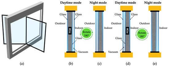 - Zhang, X.; Liu, Z.; Wang, P.; Li, B. Performance evaluation of a novel rotatable dynamic window integrated with a phase change material and a vacuum layer. Energy Convers. Manag. 2022, 272, 116333. [Google Scholar] [CrossRef]