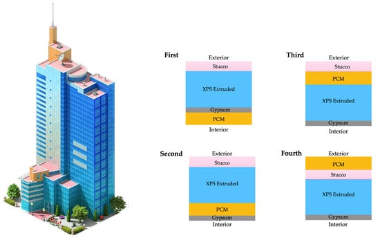 - Types of building elements with PCM integration (walls, ceilings, floors, windows, among others).