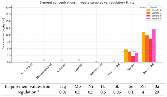 The Regulation of the Minister of the Economy of 16 July 2015 defines the criteria for accepting inert waste at landfills, and its Annex 2 [20] specifies permissible pollutant values and test methods to assess their environmental impact. The performance of laboratory tests to confirm that standards for chemical composition, heavy metal content, and leaching are met is a key aspect.