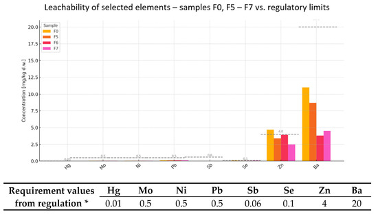 Investigating the leachability of contaminants from building materials is extremely important both for manufacturers and for environmental protection. For manufacturers, compliance with regulations is crucial. Building materials must meet certain environmental and technical standards, including leachability limits for harmful substances [20]. The reputation and quality of products an important factor. Using test results to verify that products are safe and durable can influence customer confidence. Knowledge of leachability allows formulations to be modified to reduce the risk of emissions.
