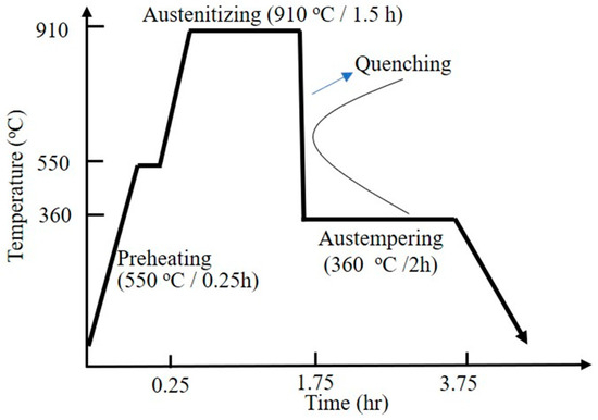 The above specimens were then austempered to obtain ADI microstructure. The heat treatment procedure is shown in Figure 2 and briefly described as follows.