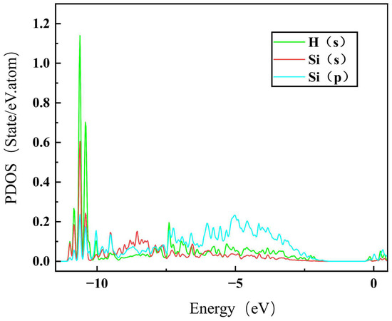 The PDOS for the hybridization between Si and H at the MP site of 9.