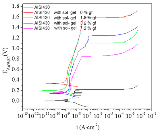 | AISI430 + 0 wt.% GP | 334 | 1571 | 1237 | 1.198 × 10−7 |